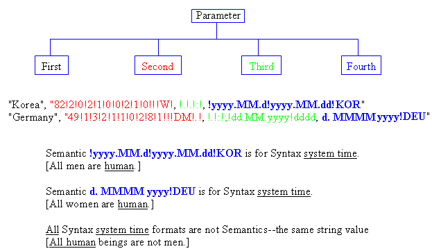 Example 1, in Windows system environmental variable script, in the control . i n f file, on Windows 9x platform, notice the 4th parameter system time is Syntax, but different time formats are Semantics;