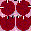 "up arrows" indicate THAT the heart is pumping blood into its pulmonary system