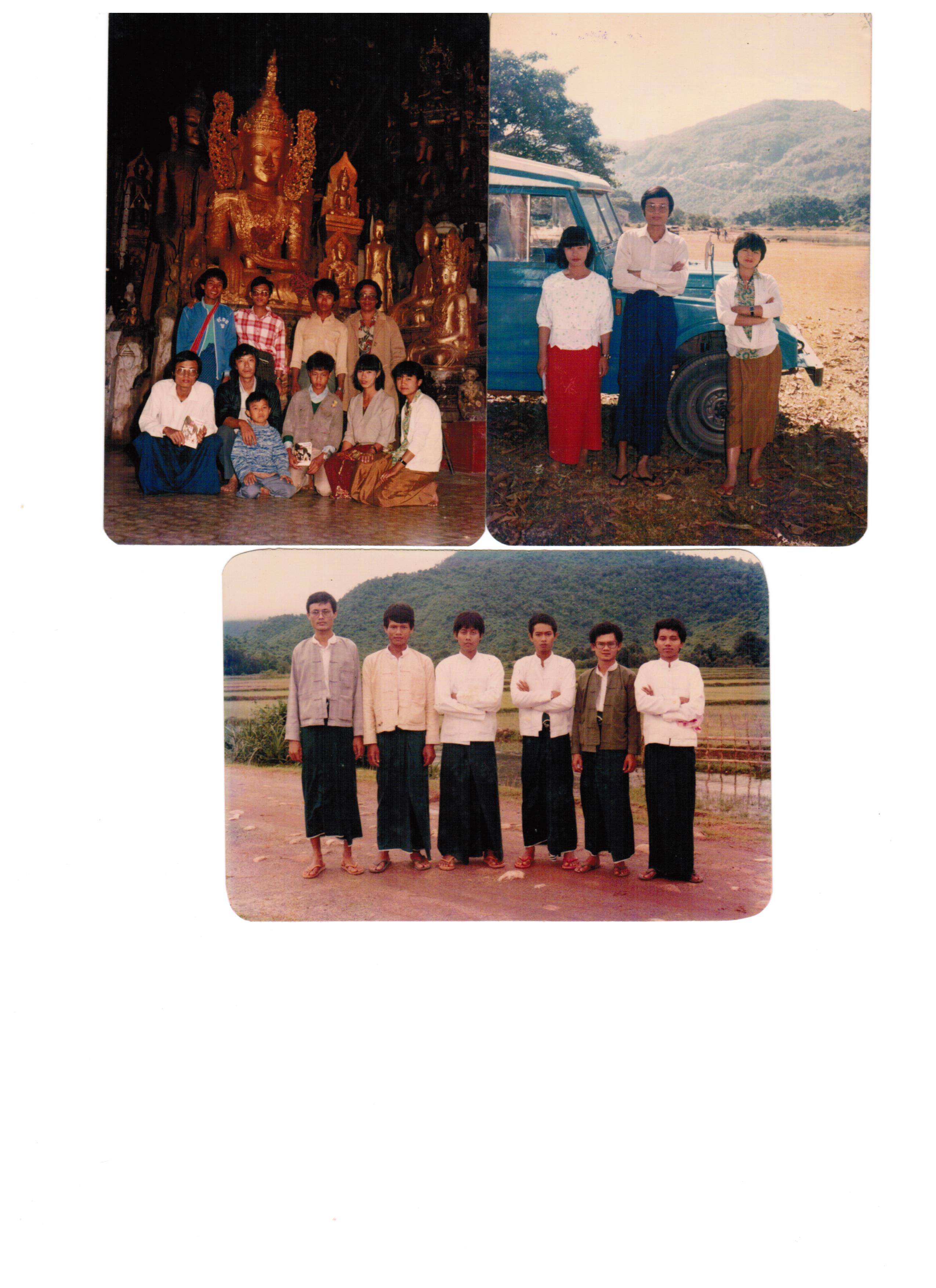 | bottom, left-to-right: HlaKyaing; HlaTwin; PyaeHein; KhinSawMay; TheinSoe; PeAung; AungMyintKyaw; HlaWin; PhoneWai; ThawThaw; AyeLwin; HlaMin(SunNi); | I was a clerk, working for Government's Exam Board, and with friends: pharmaceutical technicians, electrical marine engineer, automotive technician, science device factory technician, and so on; lucky me, free alcohol and free codeine did not make me "drug addict" ; | |