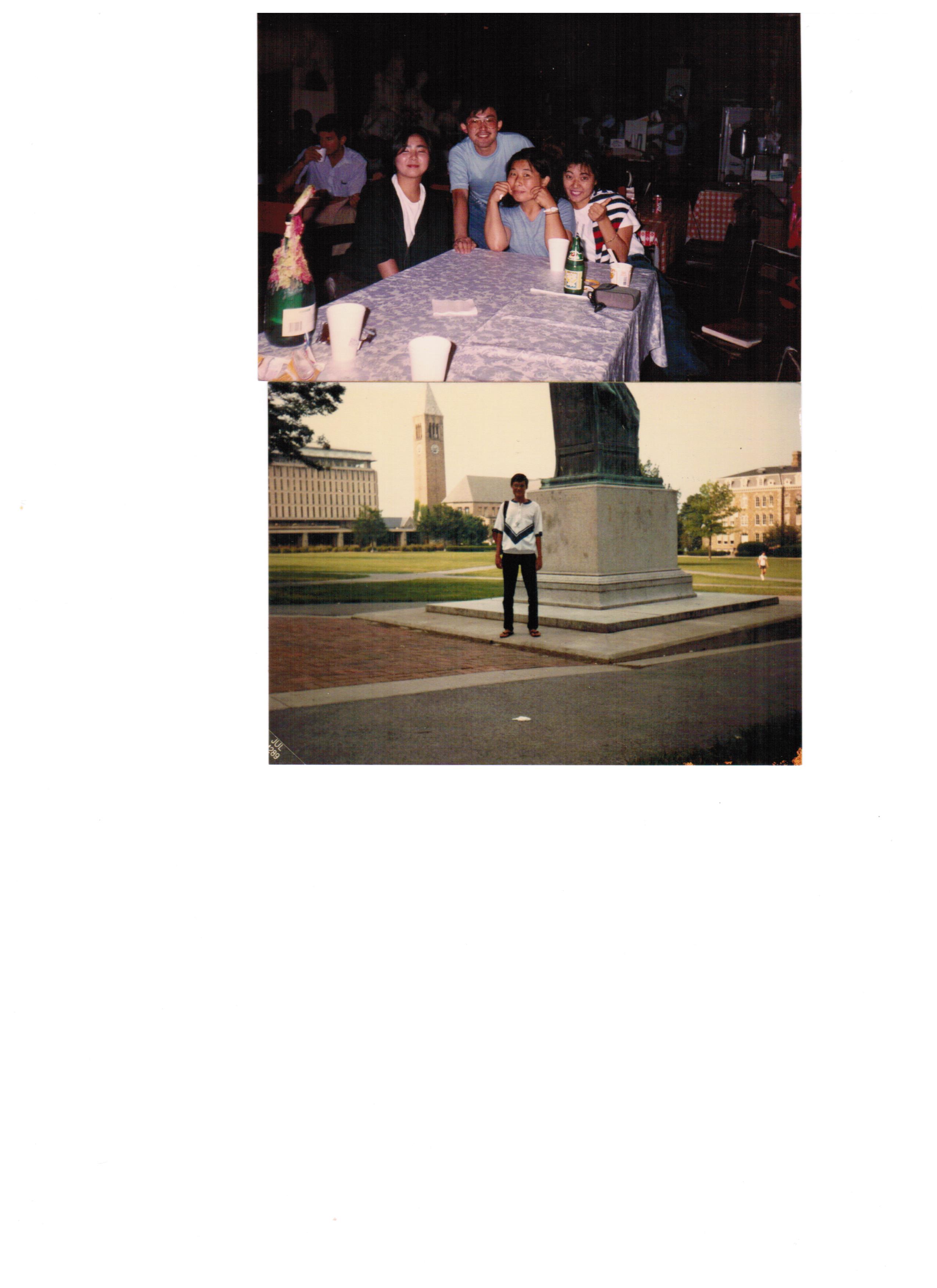 | 1989-90; | top, left-to-right: Kumi; Yoshi; Keiko; Heromi; | with classmates, canteen at Cornell University, USA; |