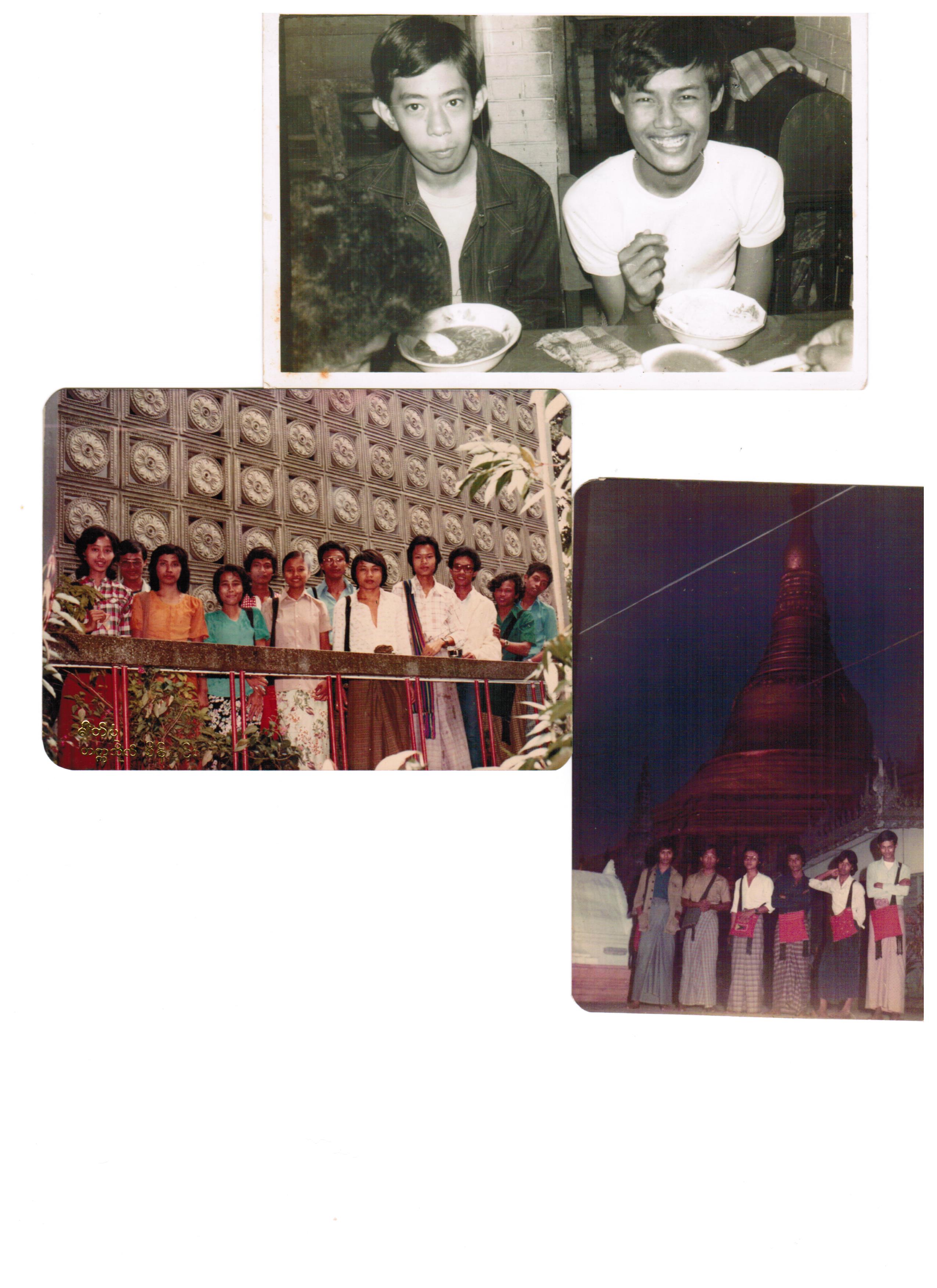 | bottom: MoeSwe; MyoMinSwe; ShweThet; TunTun; KhinMaungNyunt; | friends & tea times a lot; scrabble played with engineering students, sometimes I won, sometimes I lost; | |